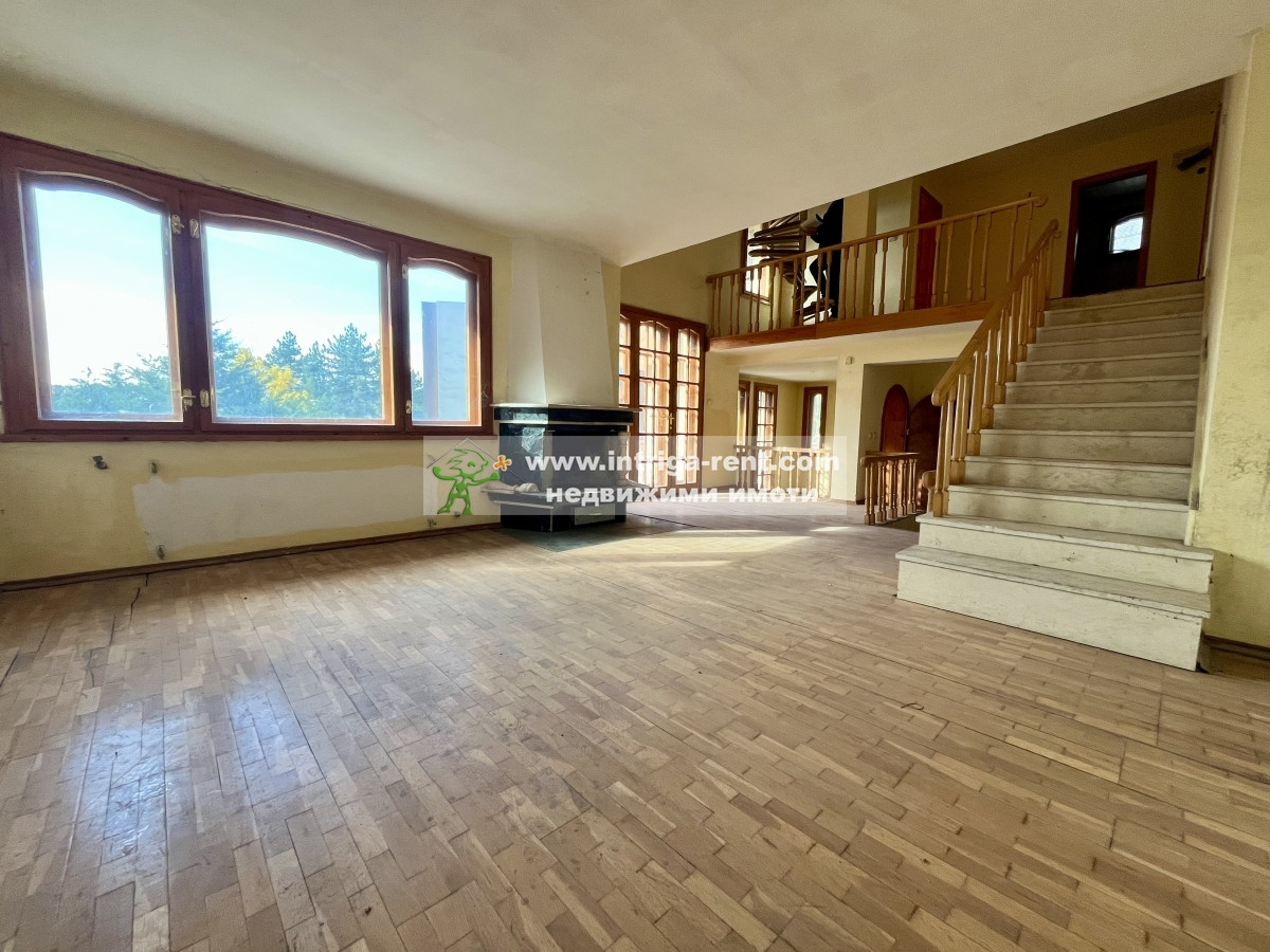 - голяма всекидневна стая / хол с вградена камина и излаз към външна открита площадка / тераса /