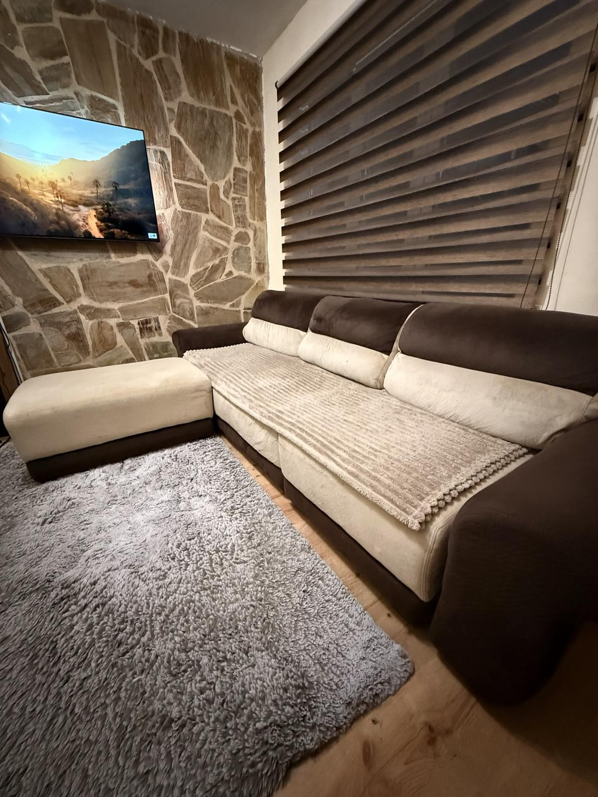 Холова гарнитура - диван тройка ,който се разтяга и става спалня и двойна табуретка втора употреба без забележки цена 200лв