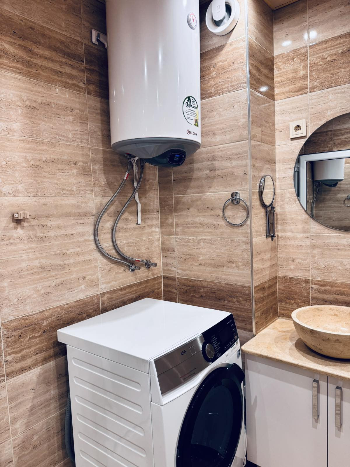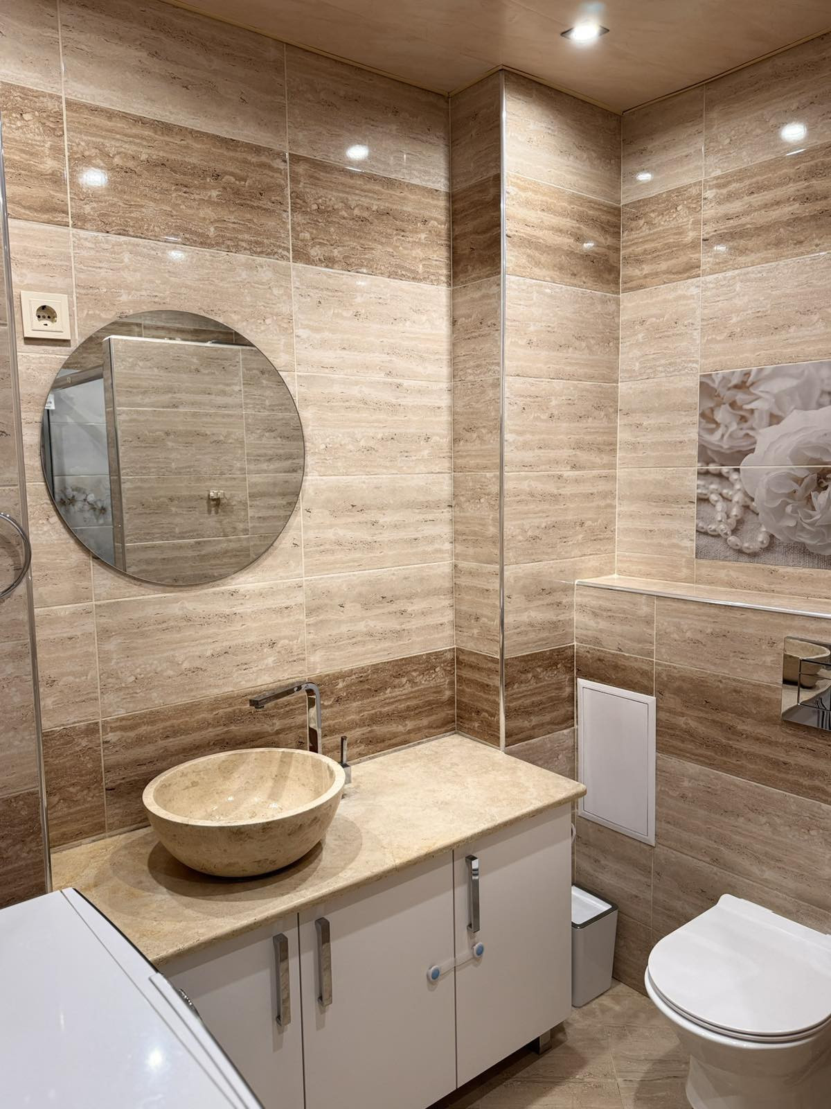 - Баня с тоалетна – модерна, с висок клас материали