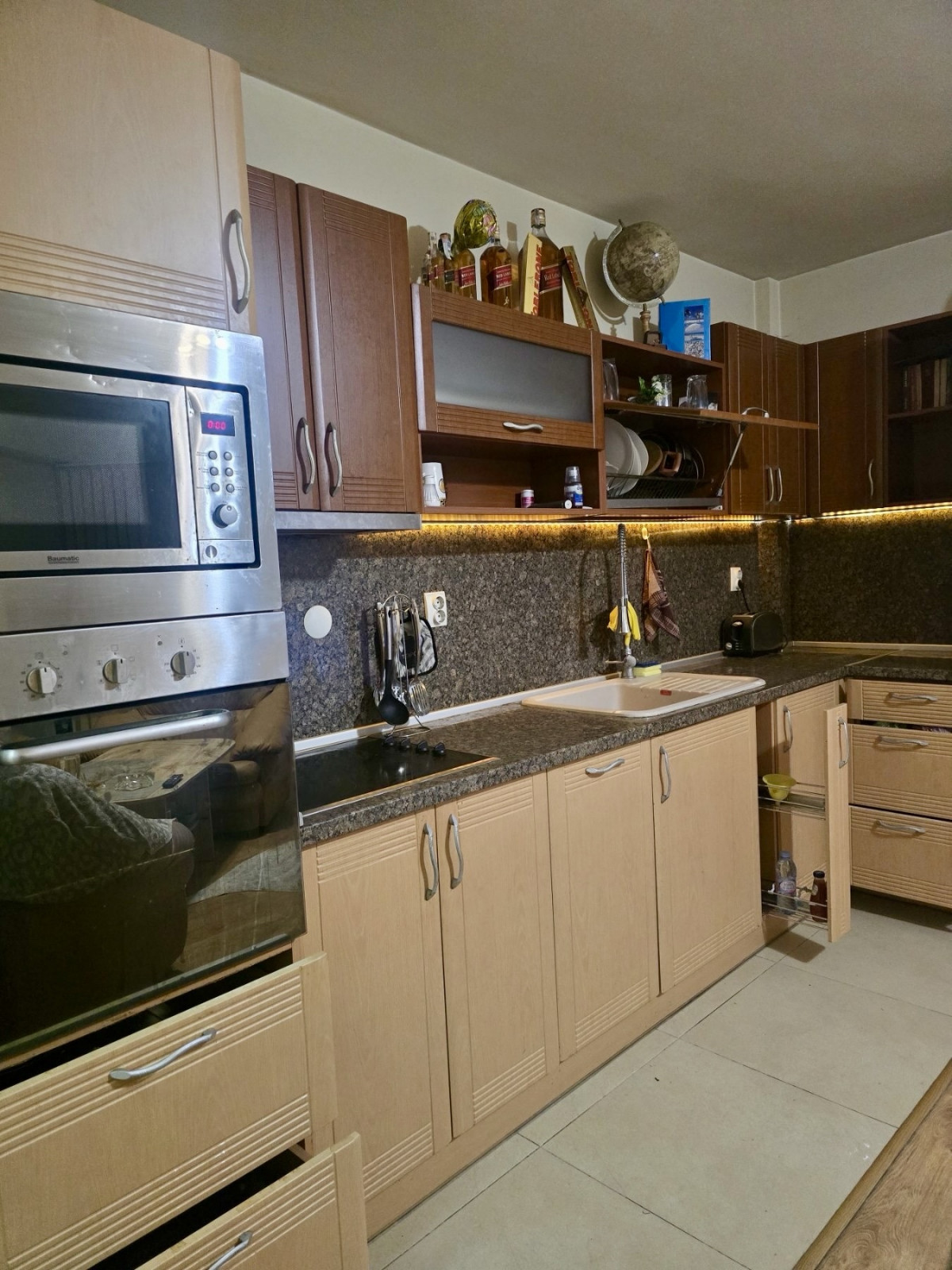 - всекидневна стая : кухненски бокс с монтирана кухня, мека мебел, холна маса, климатик, телевизор, микровълнова фурна, готварска печка, абсорбатор, секционен шкаф
