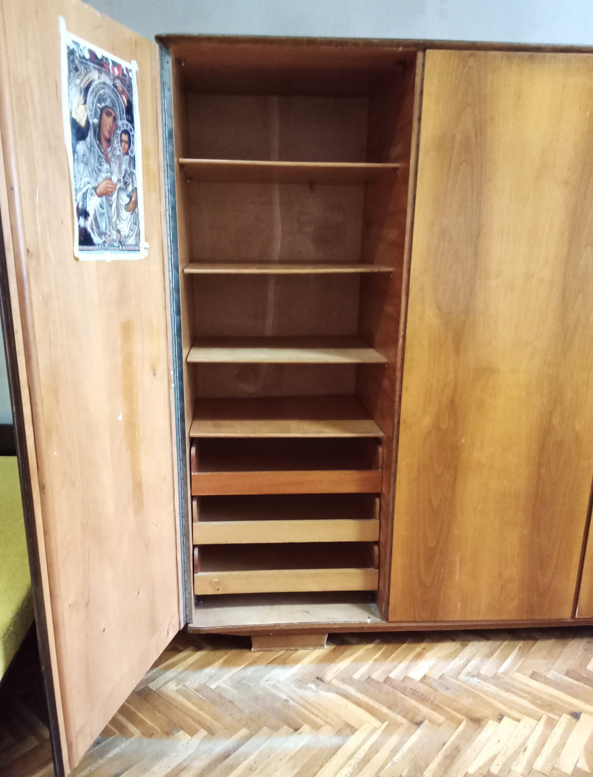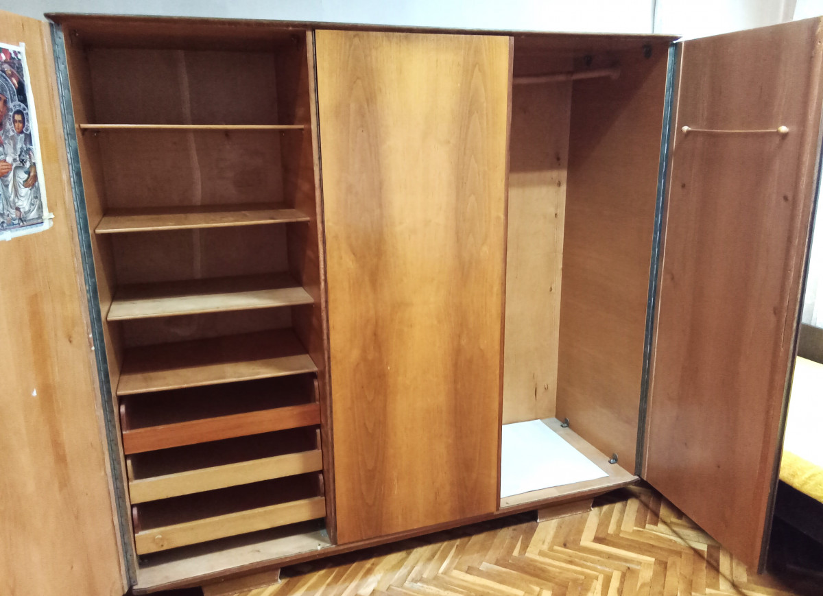 Трикрилен гардероб. Височина 173 см. Ширина 190 см. Дълбочина 60 см. Много запазен.