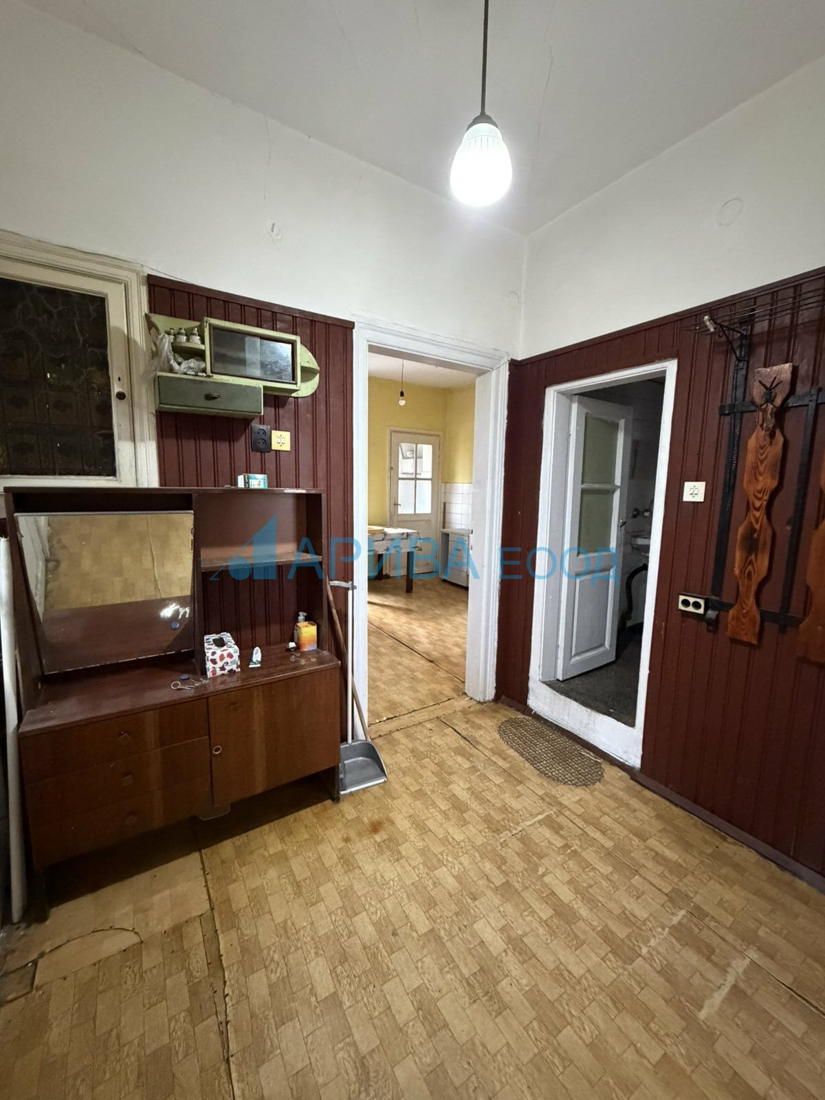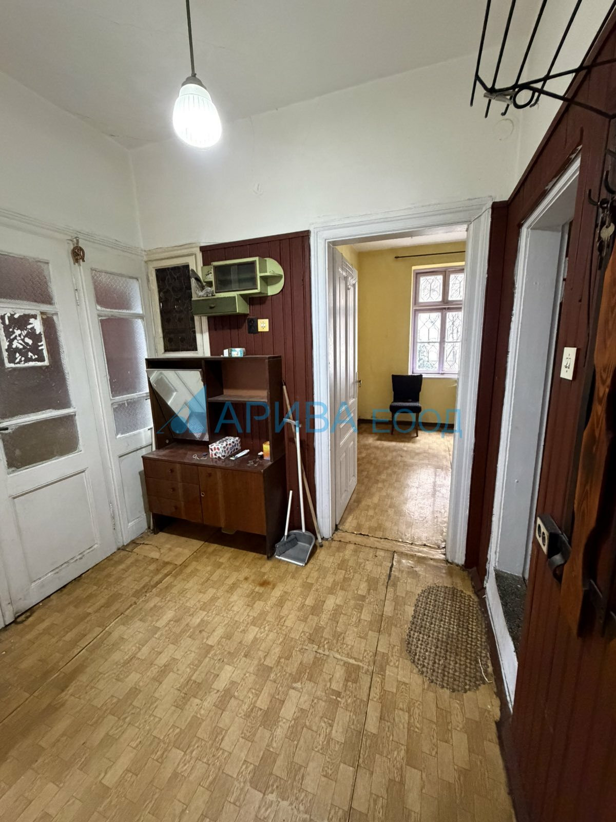 Продава се първи етаж от масивна къща с двор, приземна механа и складово помещение в кв. Училищни на град Хасково. Състои се от четири стаи, антре, санитарен възел, помощно помещение и тераса с чиста площ от 94 м2. Под етажа в приземната част се намират складово помещение и механа с обща площ от 40 м2. Три входа за етажа, два от които самостоятелни. Частичен гредоред и плоча между етажите. Между мазето и етажа три от стаите са с бетонна плоча една е с гредоред. Самостоятелни партиди за ток и вода. Обособено е вътрешно паркомясто в двора, удобно за паркиране на два автомобила. Възможност за ползване на лицевата част от сградата като търговска площ, офиси или кабинети. Имота се намира на чудесно място в тиха улича, но в същото време близо до центъра на града, до зеленчуков пазар, паркове, градини и училище Климент Охридски.