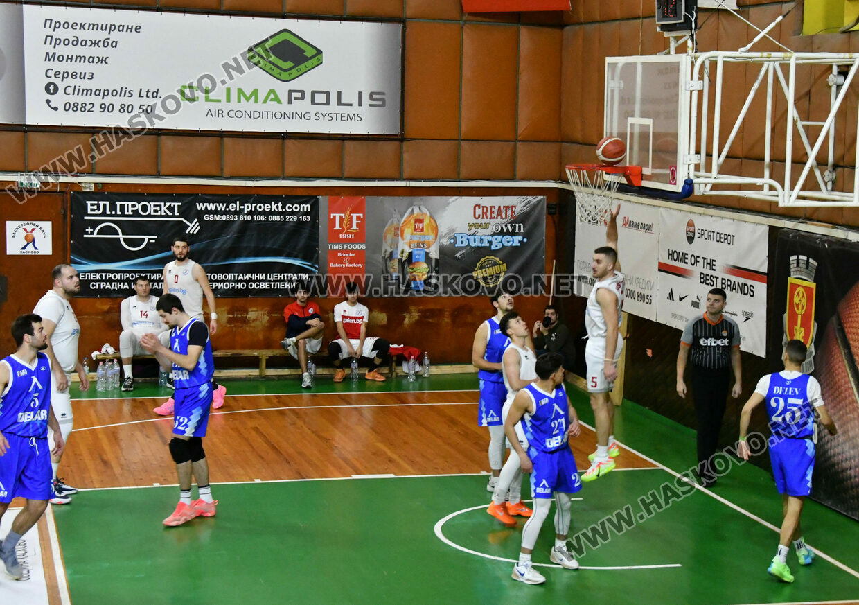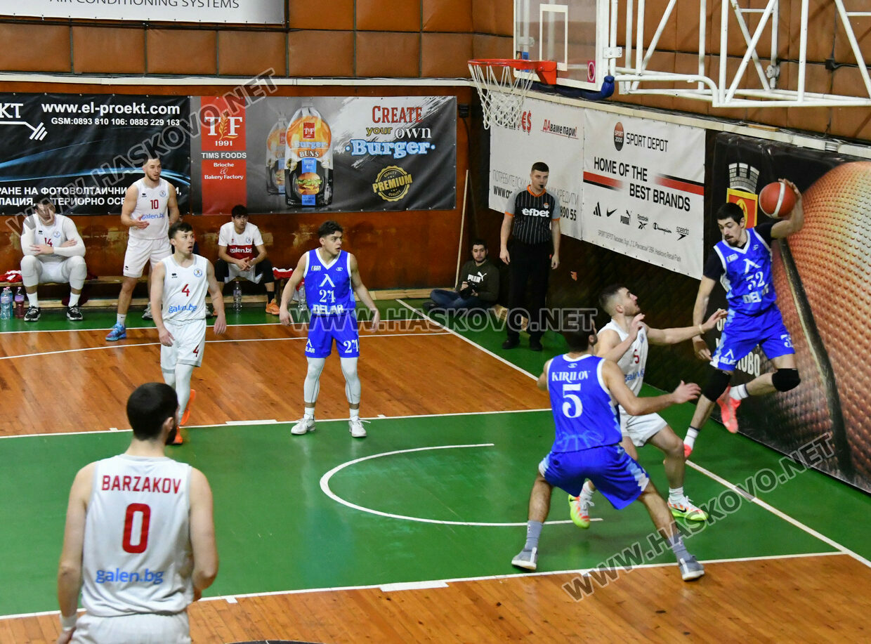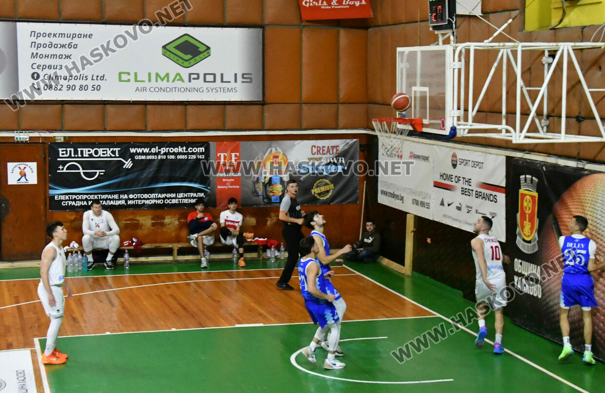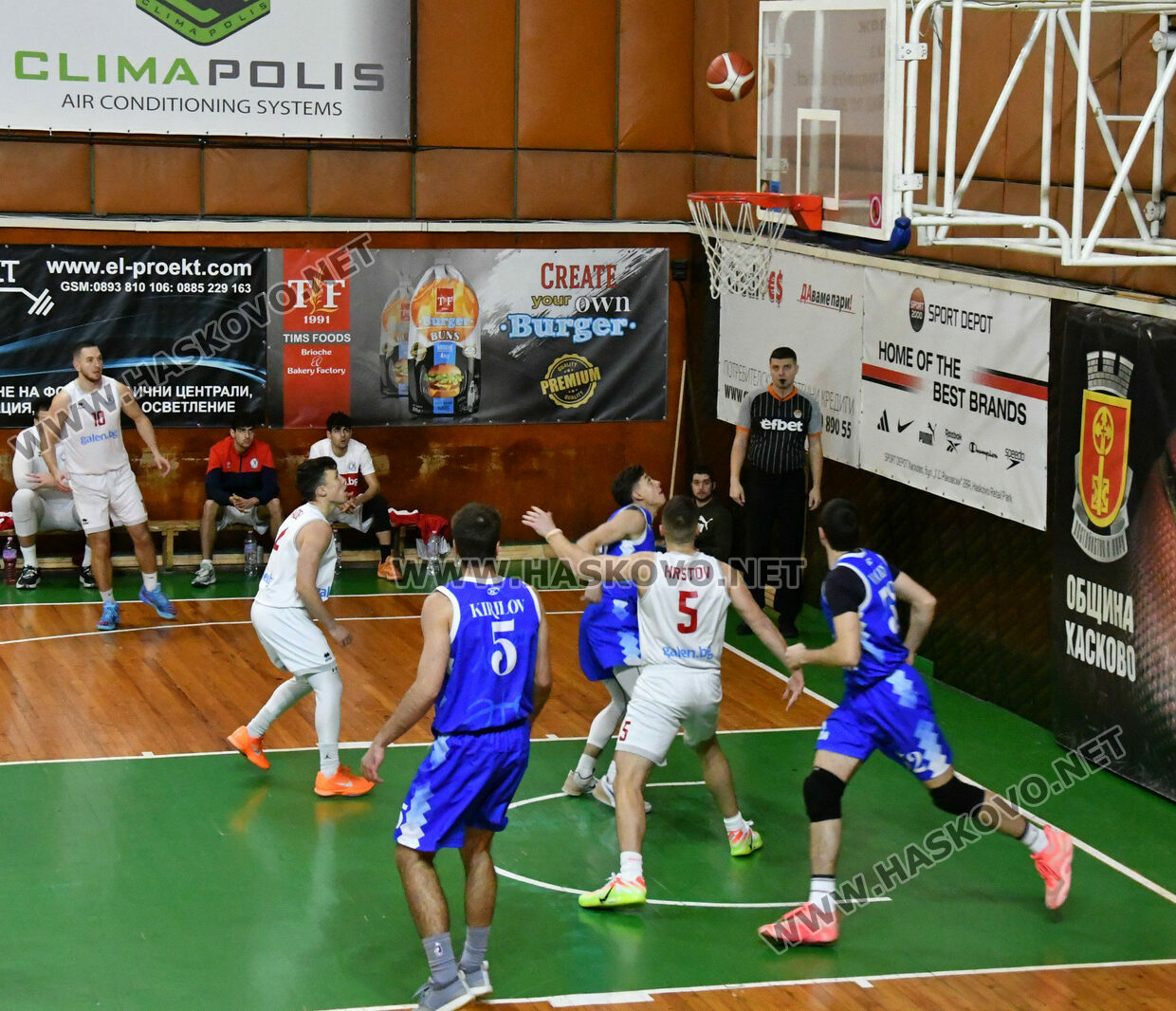 Домакините обърната резултата в своя полза още до почивката. След 20 минути игра играчите на Янко Желев водеха с 45:33. След паузата домакините не допуснаха изненада и спечелиха с 80:58 точки. Динко Христов реализира 39 точки за успеха, Томас Читадзе добави 15 т., а Георги Бързаков вкара 14 т. Най-резултатни за гостите с по 15 т. бяха Йордан Кирилов и Ерик Вълчев.