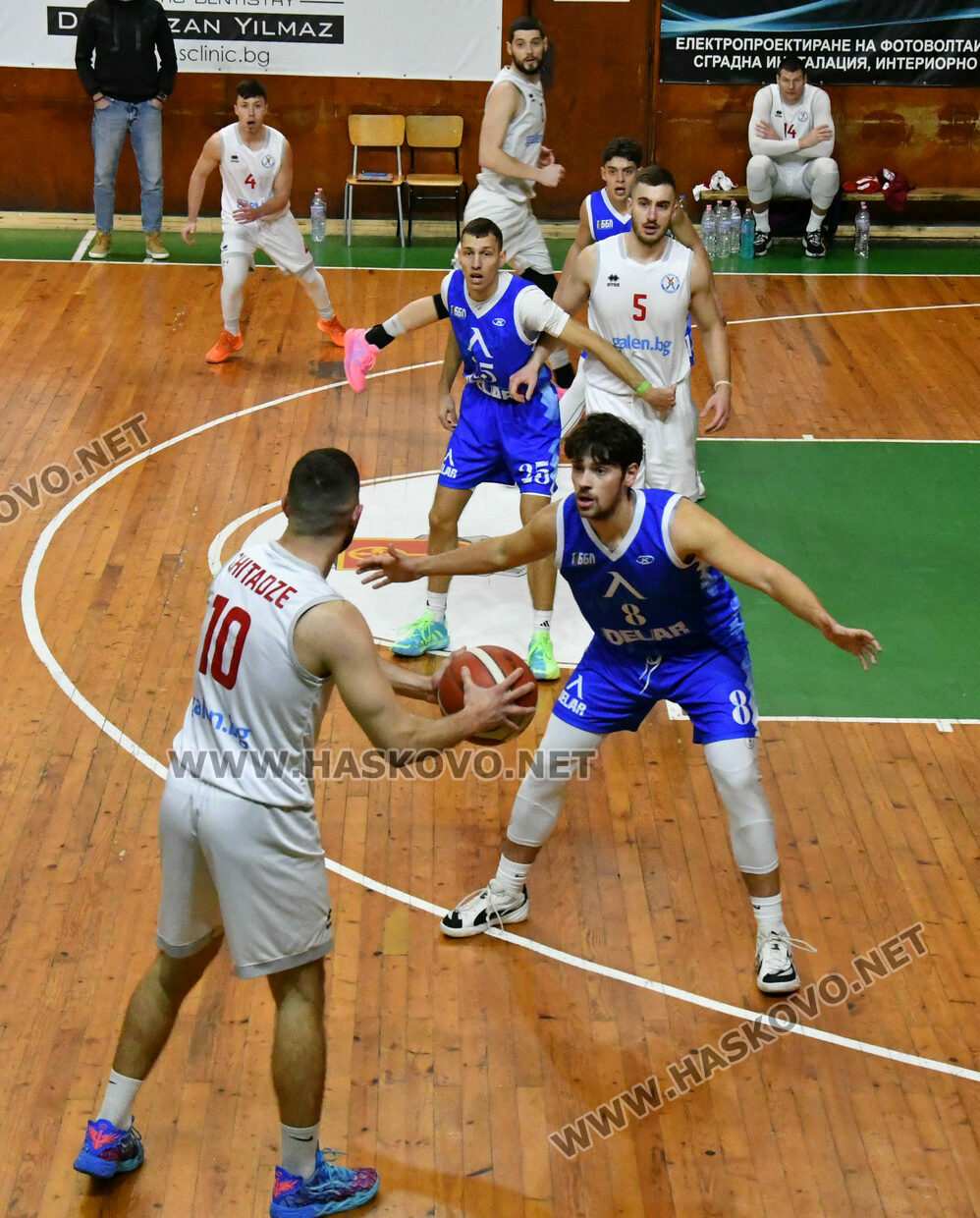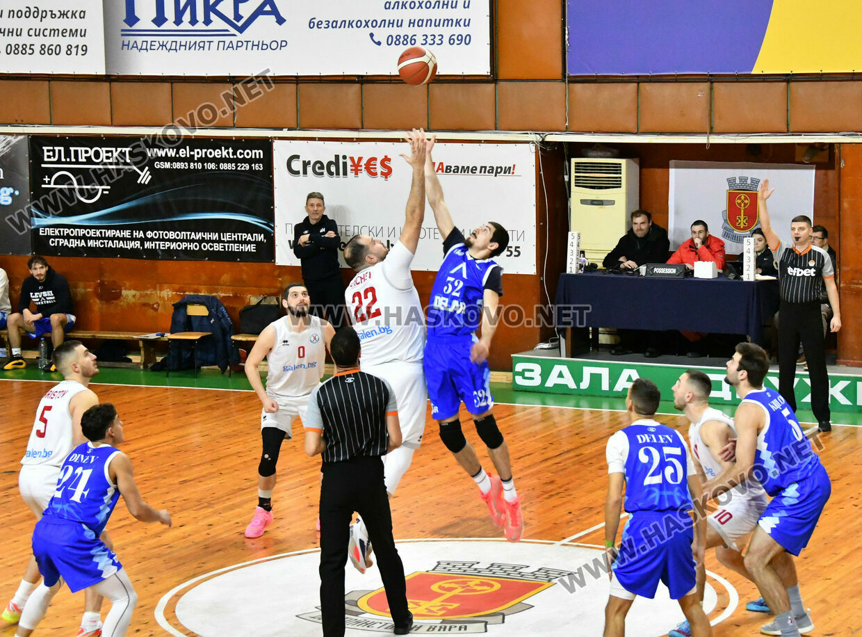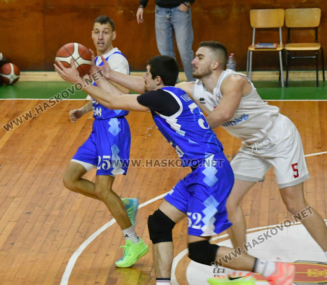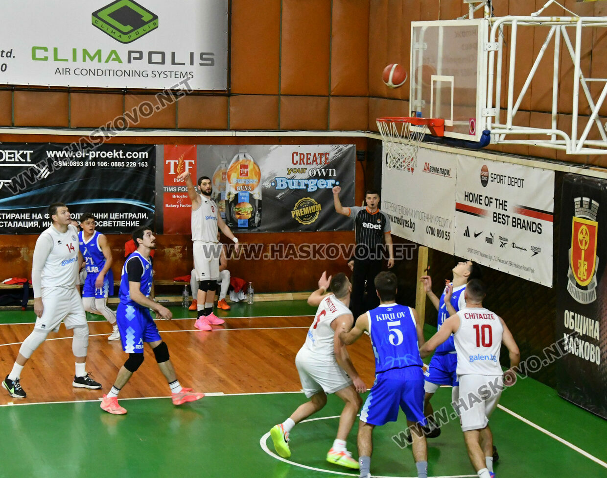 Домакините обърната резултата в своя полза още до почивката. След 20 минути игра играчите на Янко Желев водеха с 45:33. След паузата домакините не допуснаха изненада и спечелиха с 80:58 точки. Динко Христов реализира 39 точки за успеха, Томас Читадзе добави 15 т., а Георги Бързаков вкара 14 т. Най-резултатни за гостите с по 15 т. бяха Йордан Кирилов и Ерик Вълчев.