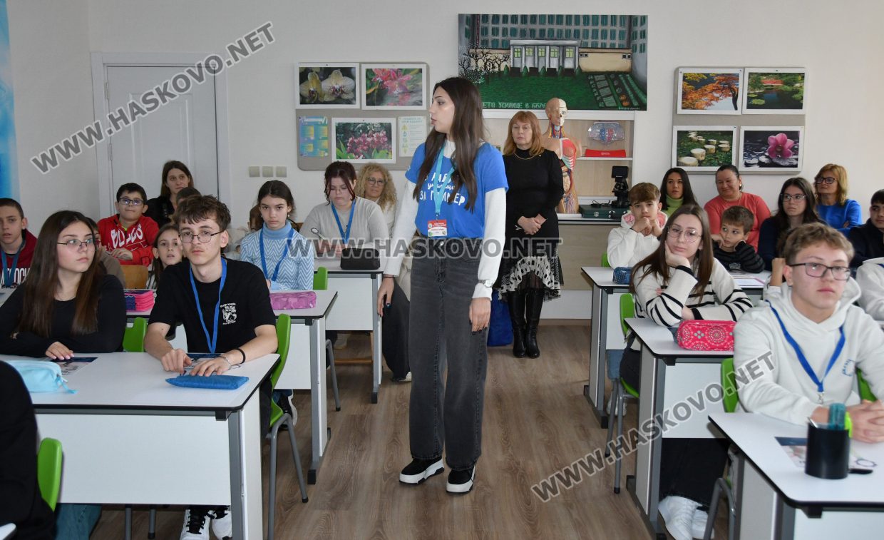 В занятието участваха ученици от първи и седми клас. Темата бе „Как се става шампион“. Учениците предварително бяха запознати с видеата с послания на известния тенисист от Хасково Григор Димитров, публикувани в платформата „Уча.се“.