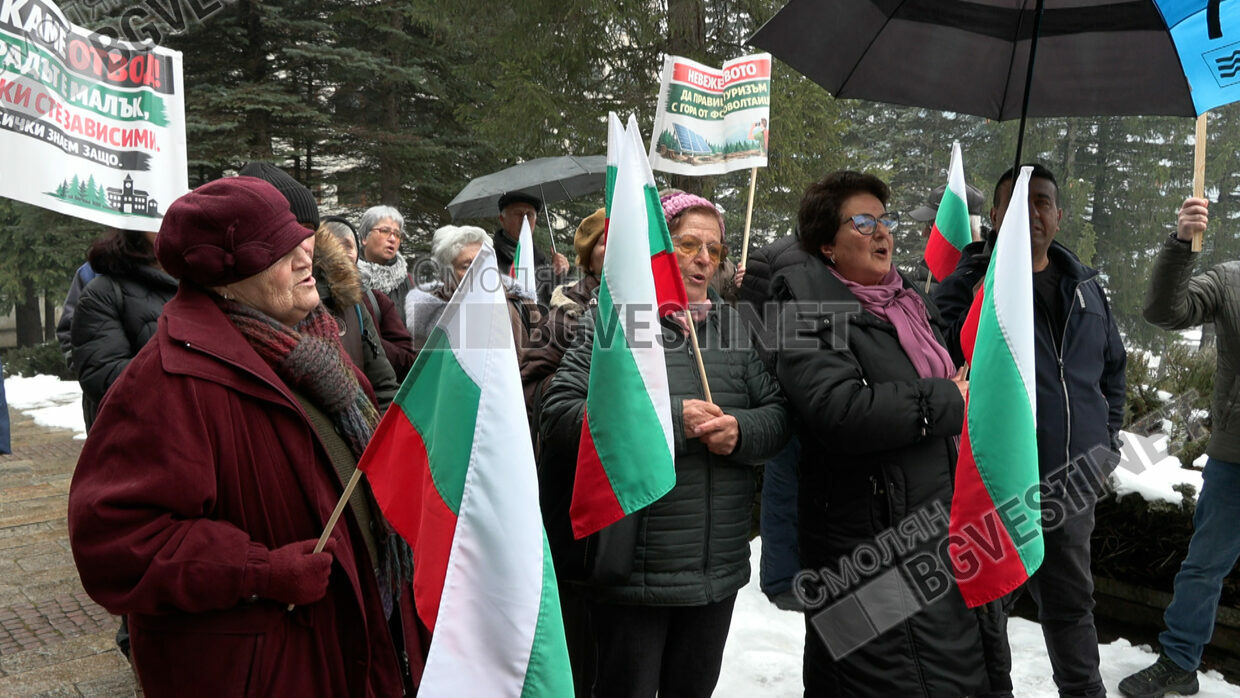Около 30 души се събраха на протест пред Съдебната палата в Смолян с искане за отвод на съдията-докладчик по жалба, внесена в Административния съд. В нея 93-ма жители настояват да бъде отменено решението на Общинския съвет за учредяване право на строеж на фотоволтаичен парк в местността „Пазлак“ край квартал Устово.