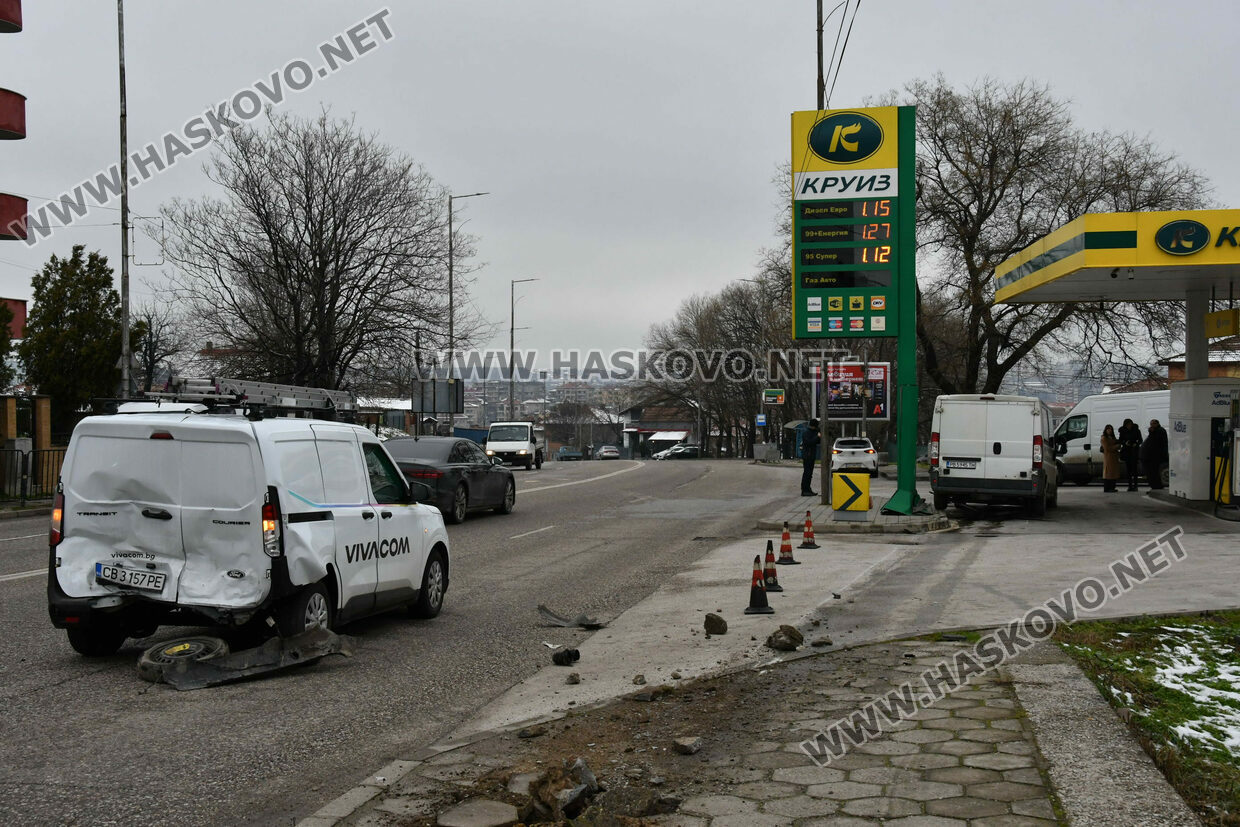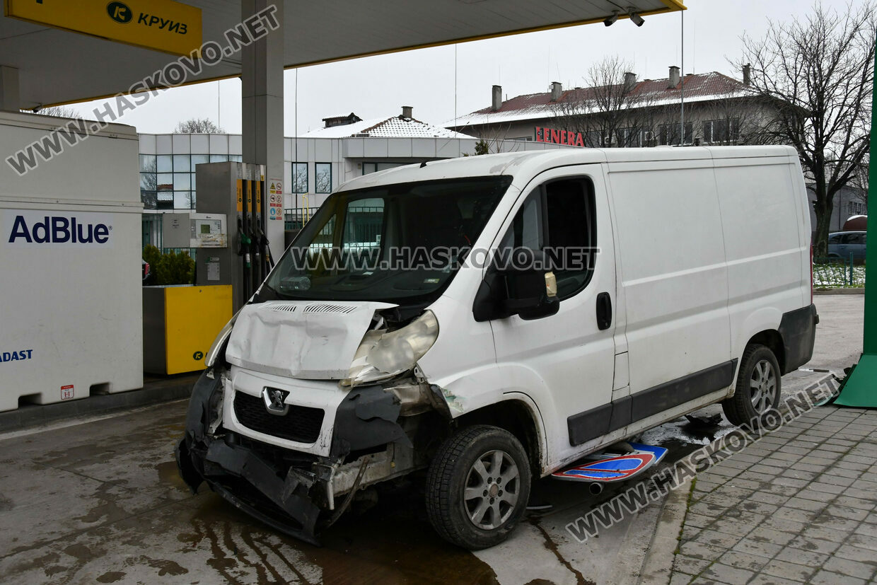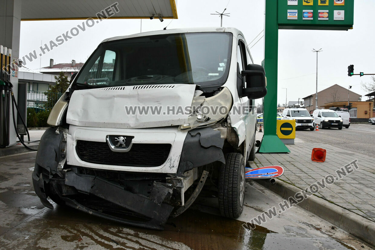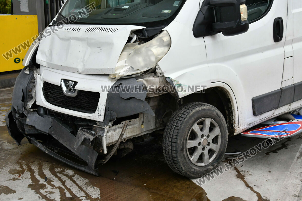 Микробус „Пежо“ бил управляван от 61-годишния Стефан Стефанов от Симеоновград. Той пътувал със съпругата си. Идвали откъм животинския пазар и трябвало да продължат в посока центъра на областния град. Навлизайки в кръстовището, бусът е ударил фирмен автомобил „Форд“, в който пътували двама служители, помел е пътни знаци и се е врязъл в бензиностанцията, удряйки металното табло с цените на горивата.