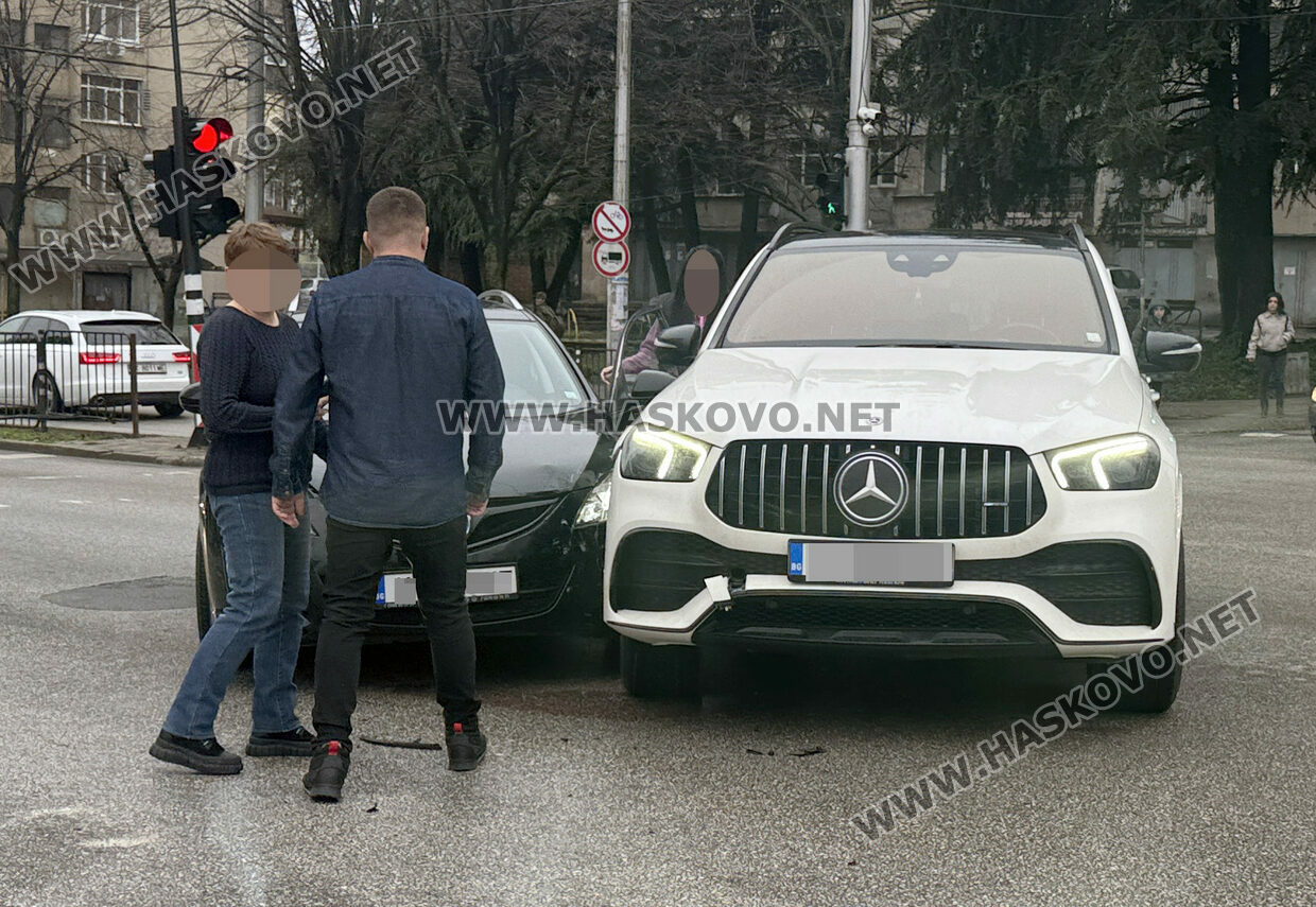 Джип „Мерцедес“ и „Тойота“ катастрофираха на оживено кръстовище в Хасково. Инцидентът стана около 16 часа днес.