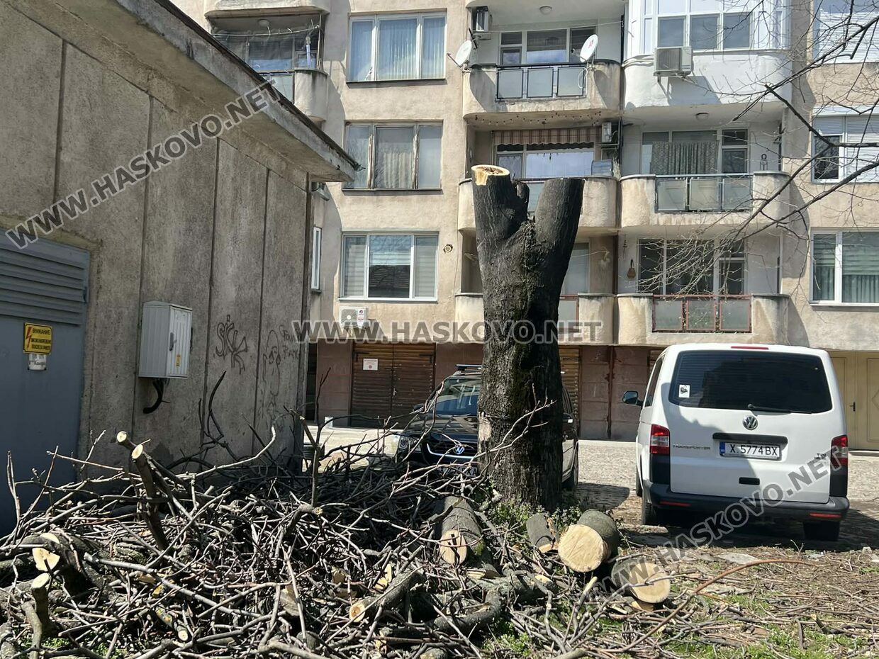 Опасно дърво бе окастрено на ул. „Кавала“ 4 в Хасково след сигнал на гражданин, който се жалва в редакцията на Haskovo.net. То се намира в междублоково пространство в близост до трафопост. Пред него има паркинг, на който непрекъснато има коли.