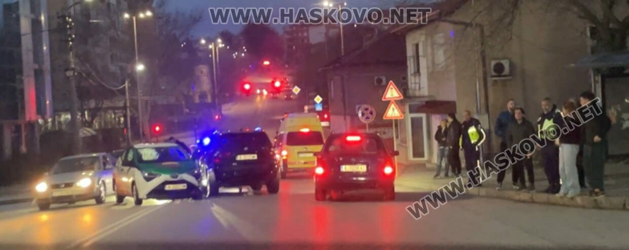 Около час по-късно в Хасково катастрофираха две коли по булевард „Освобождение“ в Хасково в района на Оранжевия мост. Ударът е между фирмен лек автомобил „Тойота“ и джип БМВ. При удара между тях са разбити предниците им вляво.