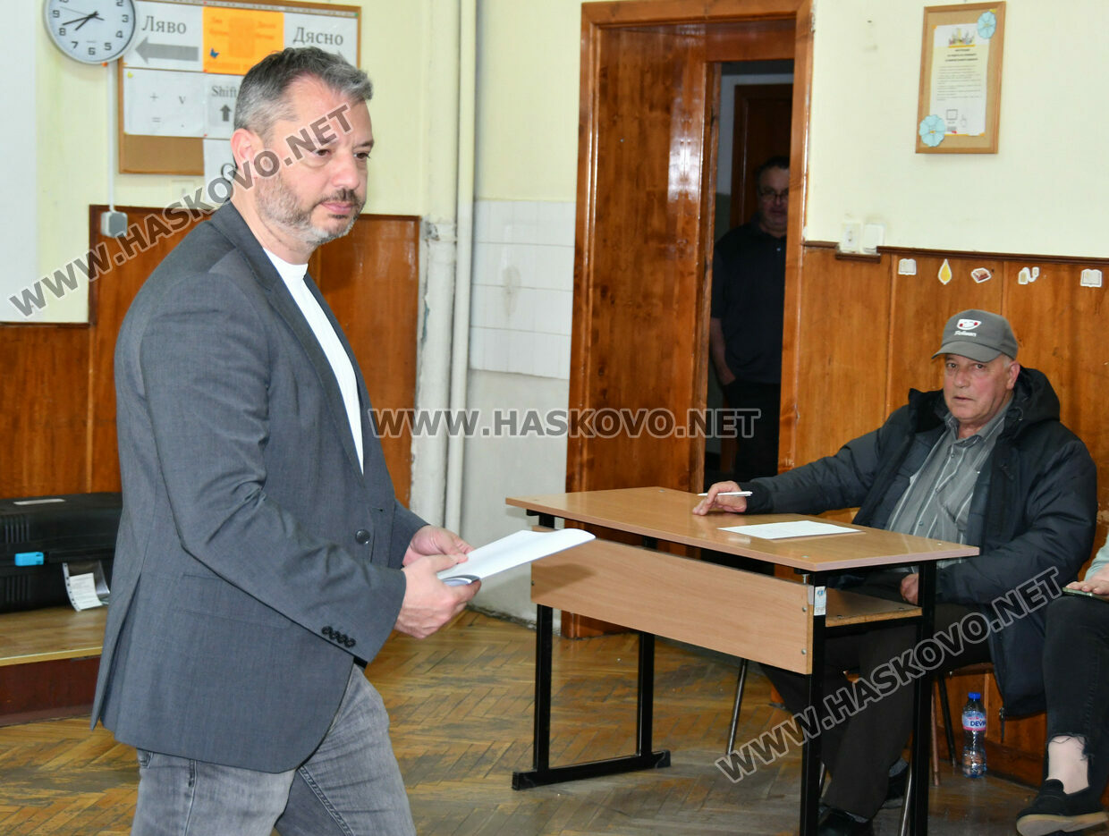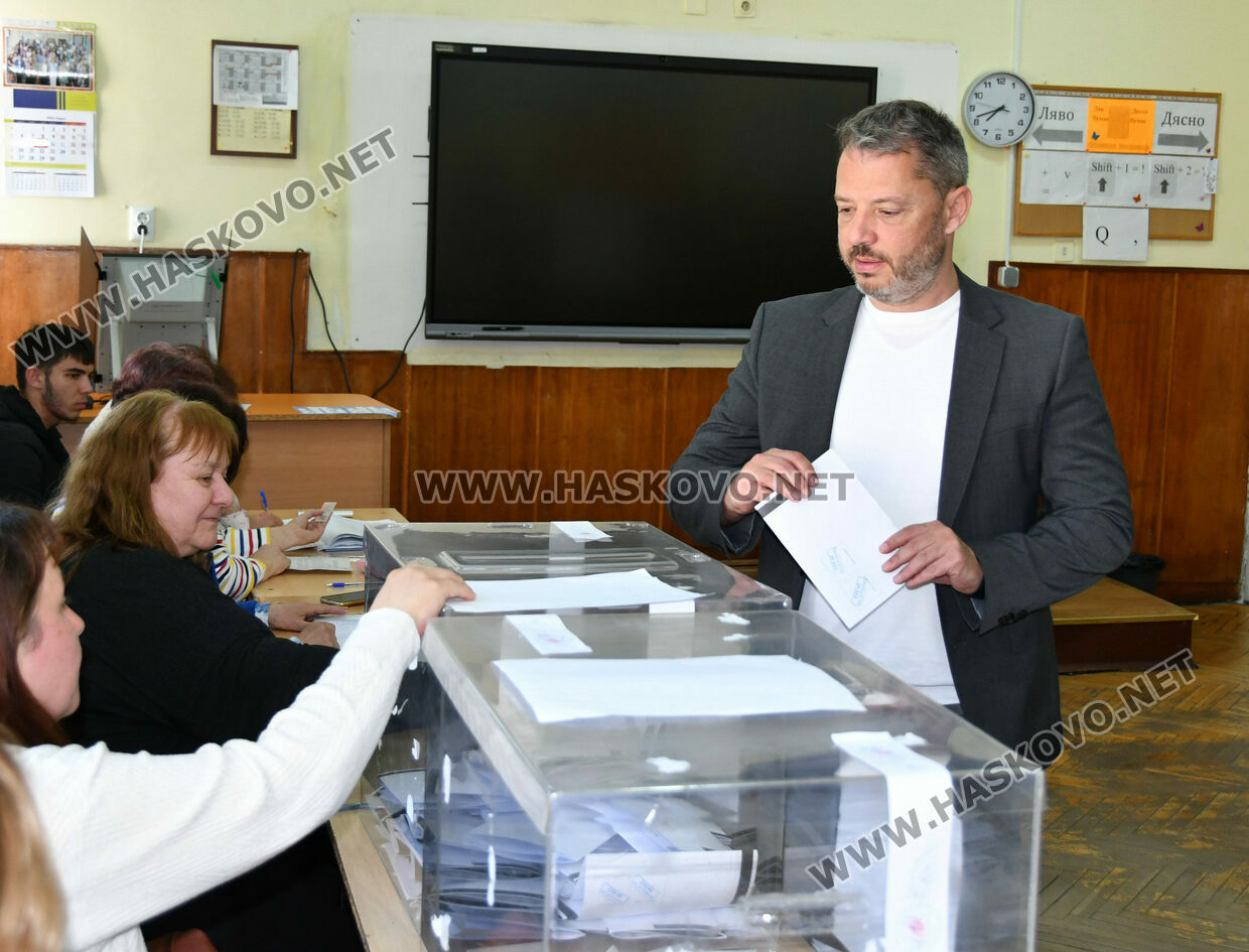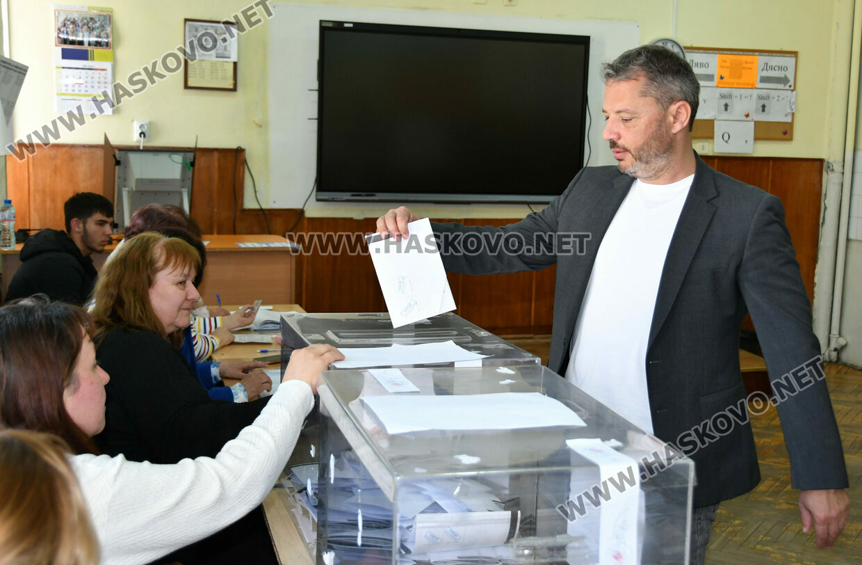 Делян Добрев упражни правото си на глас в СИК №71, разположена в СУ „Св. Паисий Хилендарски“ в град Хасково. Той пристигна в изборната секция точно в 15:15 часа, придружен от семейството си.