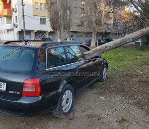 Тополата, която падна от силния вятър тази сутрин на булевард „България“ в Хасково, за малко да затисне пешеходец. Това става ясно от запис на камера за видеонаблюдение. Дървото се е стоварило малк...