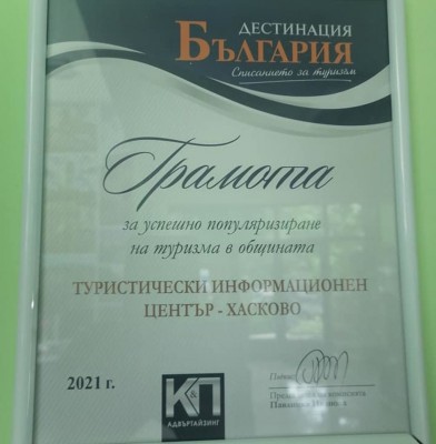 Туристически информационен център – Хасково получи грамота за успешно популяризиране на туризма в общината на Годишната среща на туристическия бранш 2021, организирана от „Дестинация България“, съобщи...