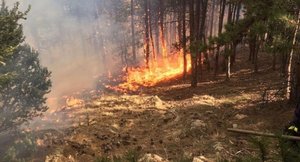 Спряха горски пожар край Надежден, изгоряха кубици общинска дървесина