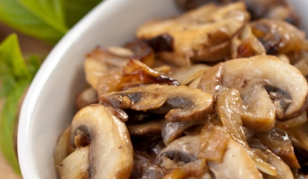 Нарежете гъбите на филийки с дебелина 2-3 мм. Поръсете ги със сол и черен пипер и ги сложете да се пържат в масло на силен огън. Отделно запържете ситно нарязания лук и го добавете към вече поомекнал...