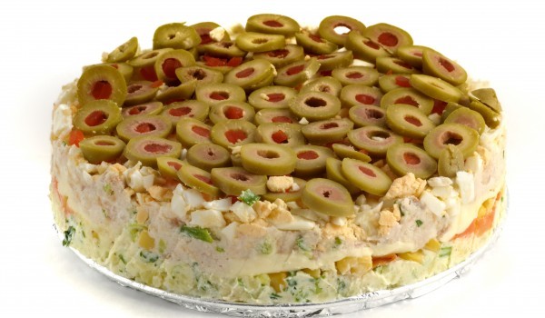 Сварявате картофите, пасират се и към тях се прибавя кремата сирене, малко сол и малко маргарин. В тавичка се прави пласт от картофите, отгоре се намазва с майонеза, настъргани кисели краставички, ма...