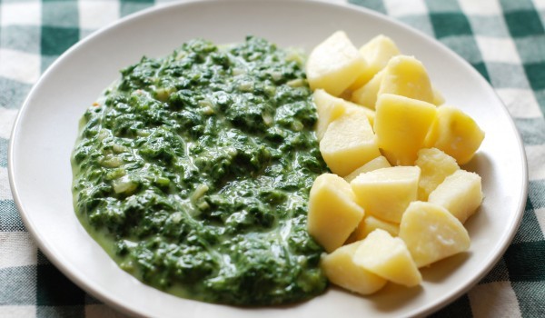 Запържвате в сгорещеното олио ситно нарязания лук до омекване, прибавяте брашното, разбърквате и поръсвате с червения пипер. Отделно запарвате спанака във вряща подсолена вода. Изцеждате, нарязвате го...
