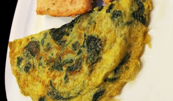 Изчистете и измийте спанака или лапада и магданоза и ги сложете в подсолена вода. Отцедете ги и ги нарежете на ситно. Разбийте 4 яйца. Прибавете спанака, сол на вкус и малко черен пипер. Разбъркайте...