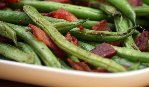 Зеленият фасул се вари в подсолена вряща вода, докато стане хрупкаво мек. Изцежда се и се оставя встрани. Лукът и чесънът се запържват в зехтина на умерена температура. Добавят се семената на резенет...